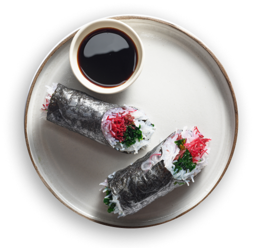 Questo rotolo di sushi non contiene pesce. Invece, è fatto con ulva.