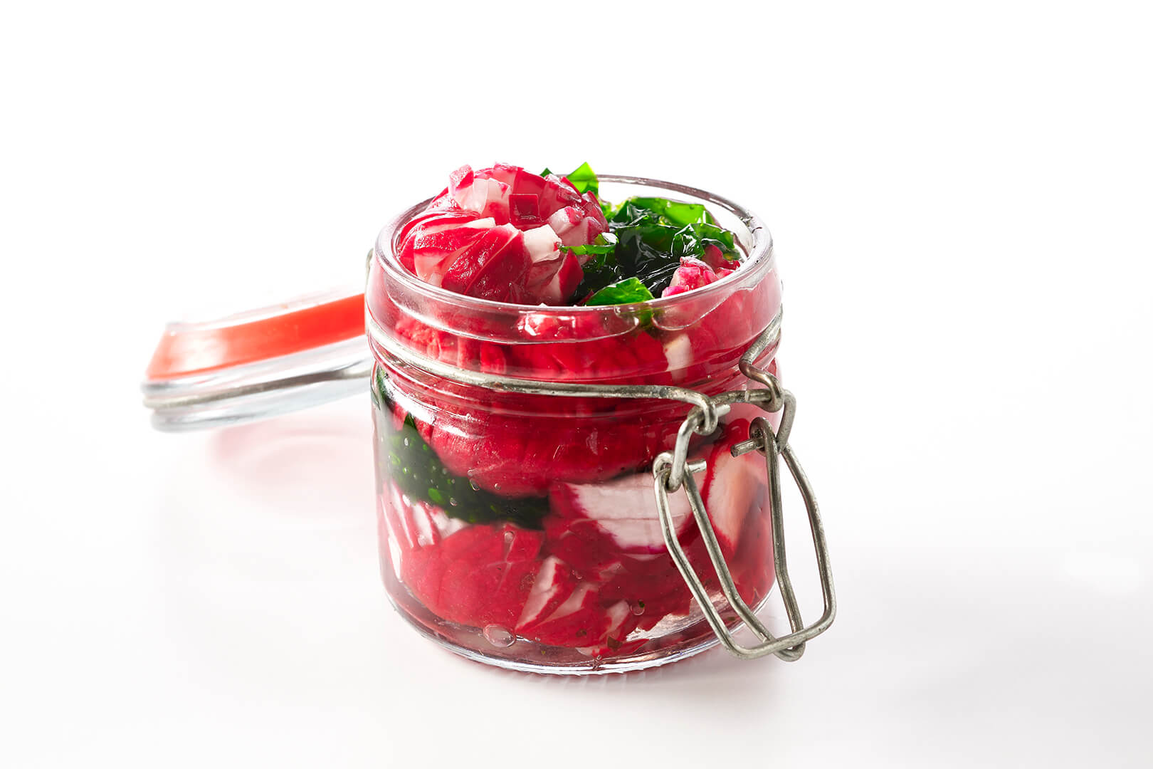 Uma combinação refrescante para o verão ou inverno é uma travessa com cenouras, beterraba, pepinos, couve-rábano e vegetais adicionais, dependendo da estação.